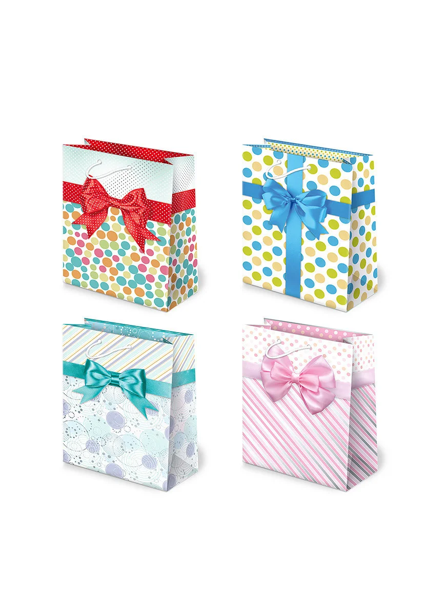 Dárkové tašky, papírové, laminované. Balení obsahuje 10 kusů, sada 4 vzorů.