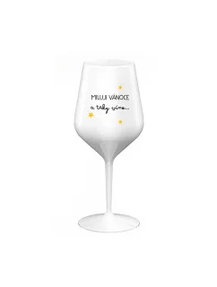 ŠTĚSTÍ SI NEKOUPÍŠ...ALE VÍNO JO! - bílá nerozbitná sklenice na víno 470 ml