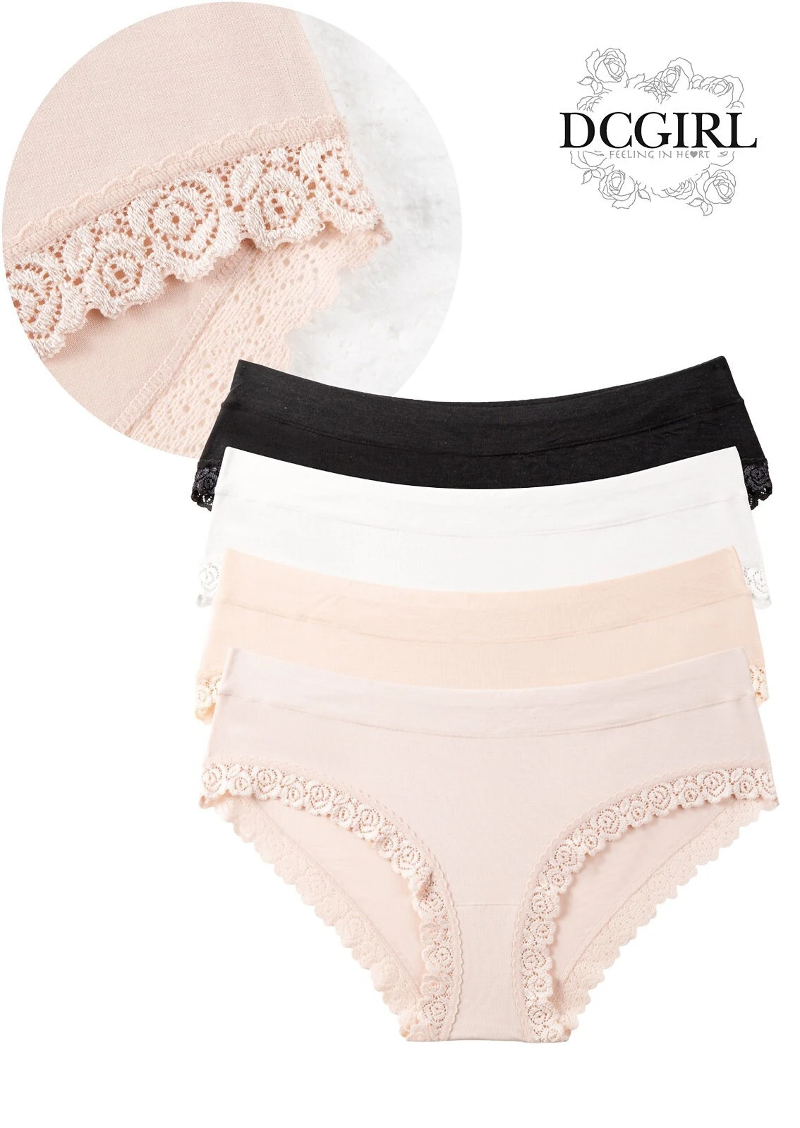 - nohavičky zakončené plochou krajkovou stuhou