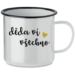 Smaltovaný Plecháček pro Chvíle Pohody - S Úsměvem a Teplem V našem rychlém světě je důležité najít si chvilku klidu a pohody. Naše nová kolekce smaltovaných plecháčků je jako stvořená právě pro tyto momenty. Každý plecháček je vyroben s láskou a pečlivostí, aby doprovázel vaše chvíle odpočinku, ať už si vychutnáváte šálek voňavé kávy, lahodného čaje nebo teplého kakaa. S objemem 350 ml jsou tyto tradiční smaltované hrnky perfektními společníky pro každý den. A co je na nich nejlepší? Každý z nich nese vtipný motiv: DĚDA VÍ VŠECHNO, který rozjasní váš den a přinese úsměv na tvář. Tyto hrnky jsou jako malé pohlazení pro duši - ideální pro chvíle, kdy jste sami sebou, nebo pro ty nezapomenutelné okamžiky strávené s vašimi nejbližšími. Zapomeňte na chvíli na všechny starosti a užijte si klidný moment s naším smaltovaným plecháčkem. Objednejte si jej nyní a připravte se na maximální požitek z každého doušku! Doporučujeme ruční mytí tohoto produktu pro zachování jeho kvality a trvanlivosti. Nedoporučujeme umisťovat do myčky na nádobí.