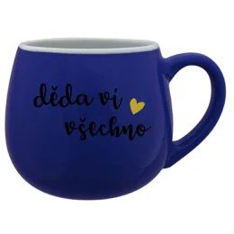 DĚDA VÍ VŠECHNO - modrý keramický hrníček 300 ml
