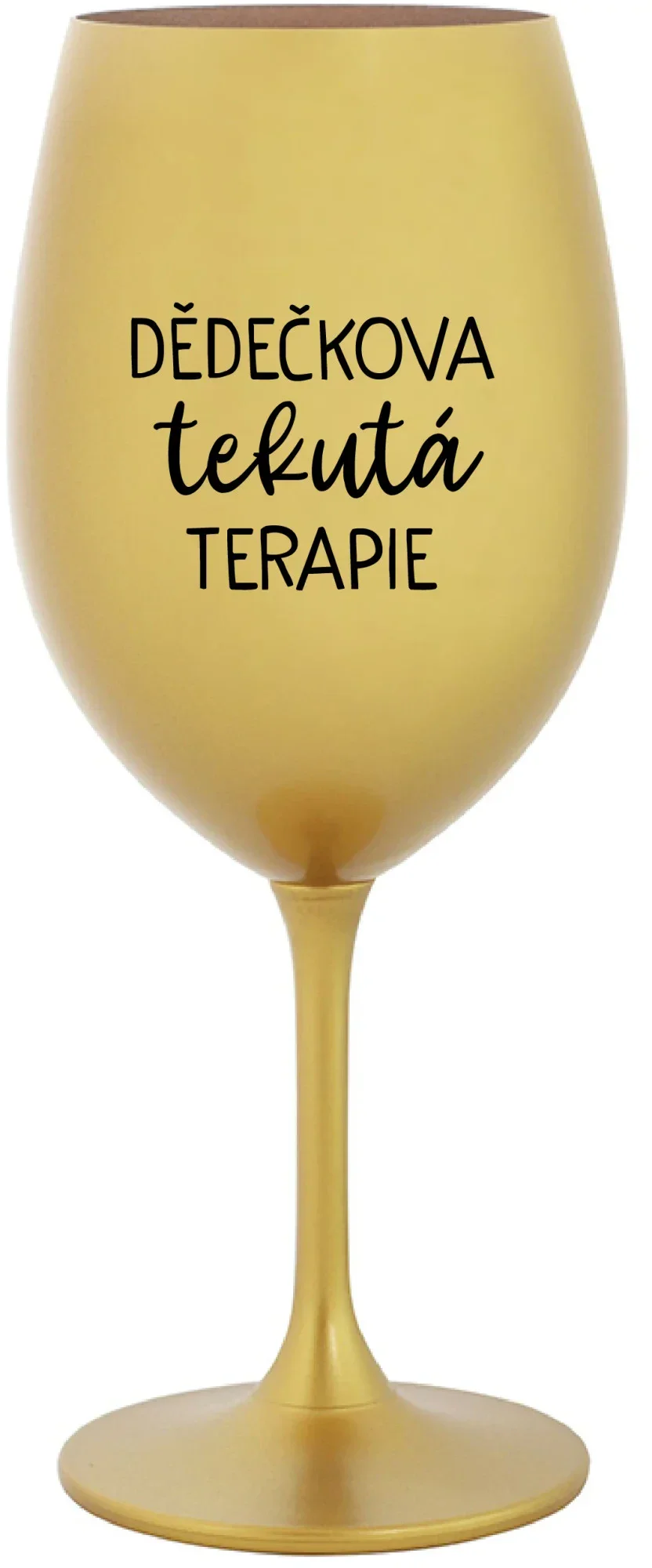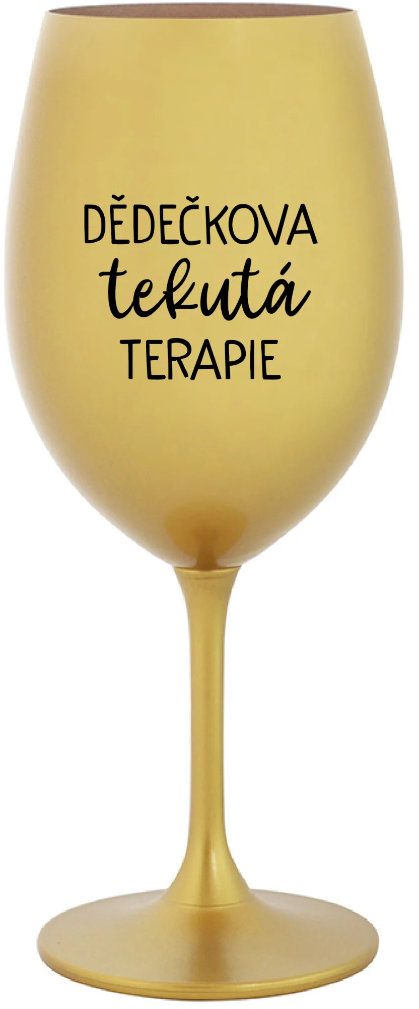 DĚDEČKOVA TEKUTÁ TERAPIE - zlatá sklenice na víno 350 ml
