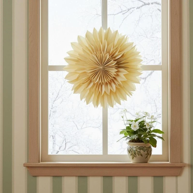 Wykonana z wysokiej jakości papieru, o delikatnym, ażurowym wzorze idealnie nadaje się do zawieszenia w oknach, na ścianach, nad stołem czy w dowolnym miejscu, które potrzebuje subtelnego, dekoracyjnego akcentu. Jej kolorystyka pasuje do różnych stylów wnętrz – od skandynawskiego po nowoczesny!