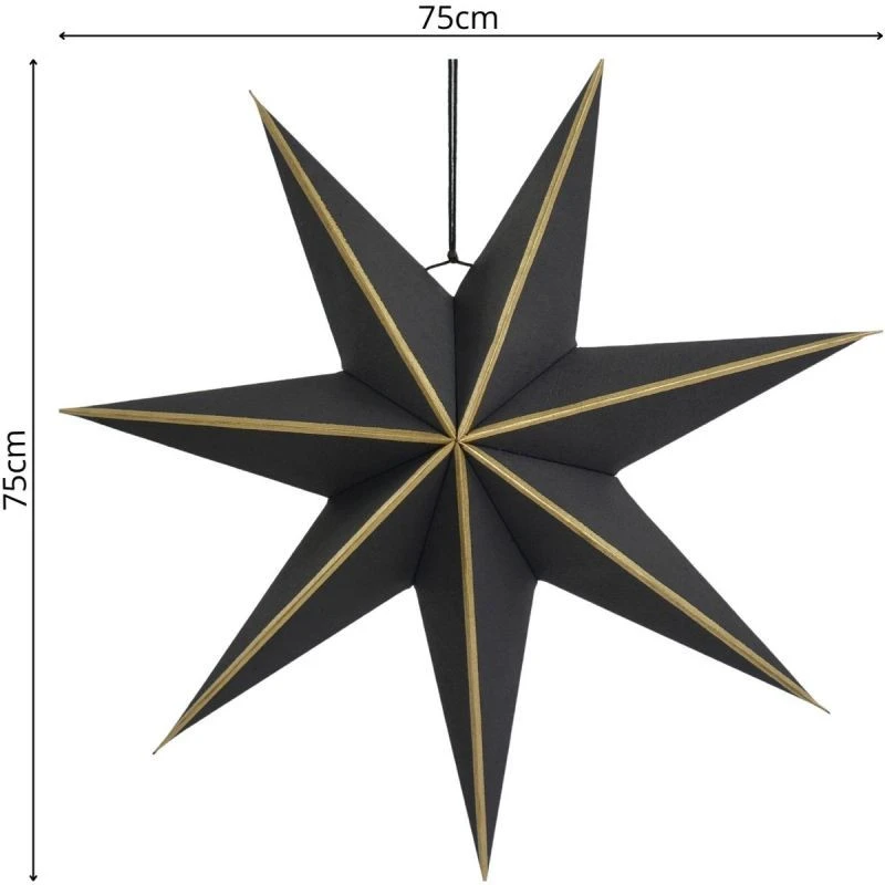 Średnica 75 cm sprawia, że gwiazda przyciąga uwagę już od progu – świetnie sprawdzi się w salonie, witrynie sklepowej, holu czy przestrzeni biurowej.