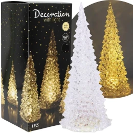 CHOINKA DEKORACYJNA PRZEŹROCZYSTA LED CIEPŁY BIAŁY 27CM wniesie do Twojego domu przytulne światło, świąteczny nastrój i elegancki akcent, który od razu tworzy magiczną atmosferę zimowych wieczorów.