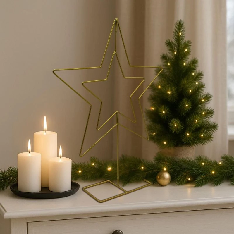 Postaw na elegancję w najczystszej formie – stojąca gwiazda dekoracyjna 50 cm w złotym kolorze to ozdoba, która zachwyci każdego.