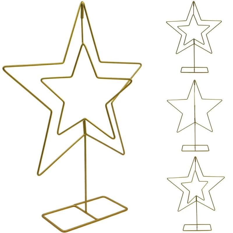 GWIAZDA DEKORACYJNA STOJAK METALOWA 50CM ZŁOTA MICA to dekoracja, która łączy nowoczesny design z klasyczną elegancją. Doskonale prezentuje się na stole, komodzie, półce czy w biurze. Jej złoty odcień wprowadza do wnętrza ciepło, luksus i wyjątkowy klimat – zarówno podczas świąt, jak i przez cały rok.