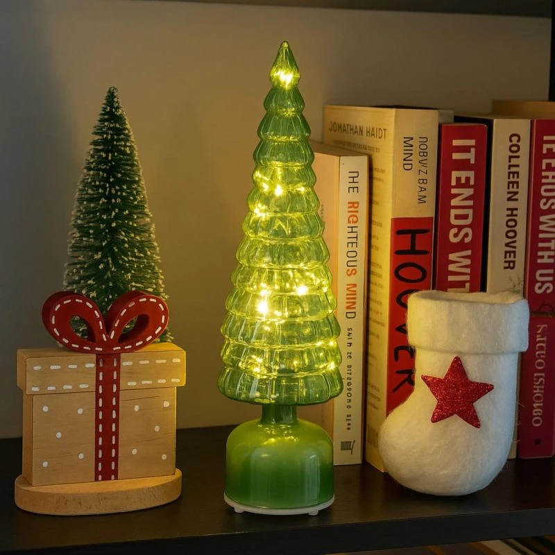 Zielona choinka dekoracyjna LED 40 cm to elegancka ozdoba bożonarodzeniowa ze szkła, która tworzy ciepły, magiczny klimat i przyciąga wzrok migoczącym światłem.