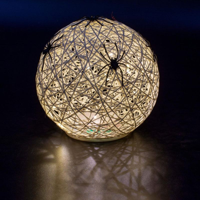 Díky zabudovanému osvětlení LED koule vyzařuje jemné, atmosférické světlo, které zvýrazňuje pavouky na lampě. Díky tomu je dekorace poutavá a dodává šarm tmavým aranžmá.
