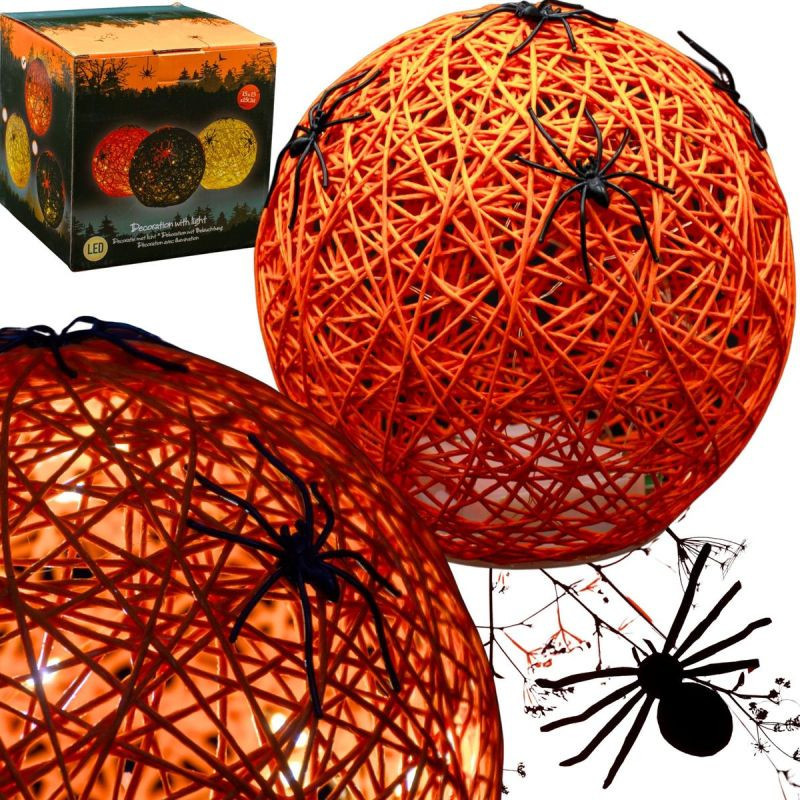 DEKORATIVNÍ KOULE VEDLA PAVOUK LAMPA 15CM HALLOWEEN ORANŽOVÁ
