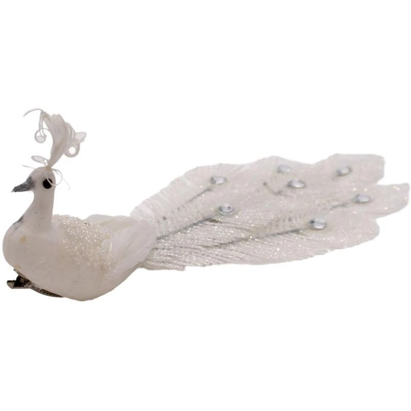 DEKORATIVNÍ PÁV NA SPONĚ NA CETKY BÍLÝ