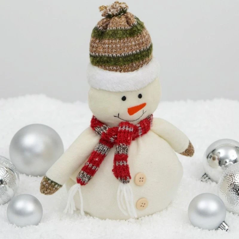 DEKORATIVNÍ SNĚHULÁK 23CM S ČEPICÍ A ŠÁLOU