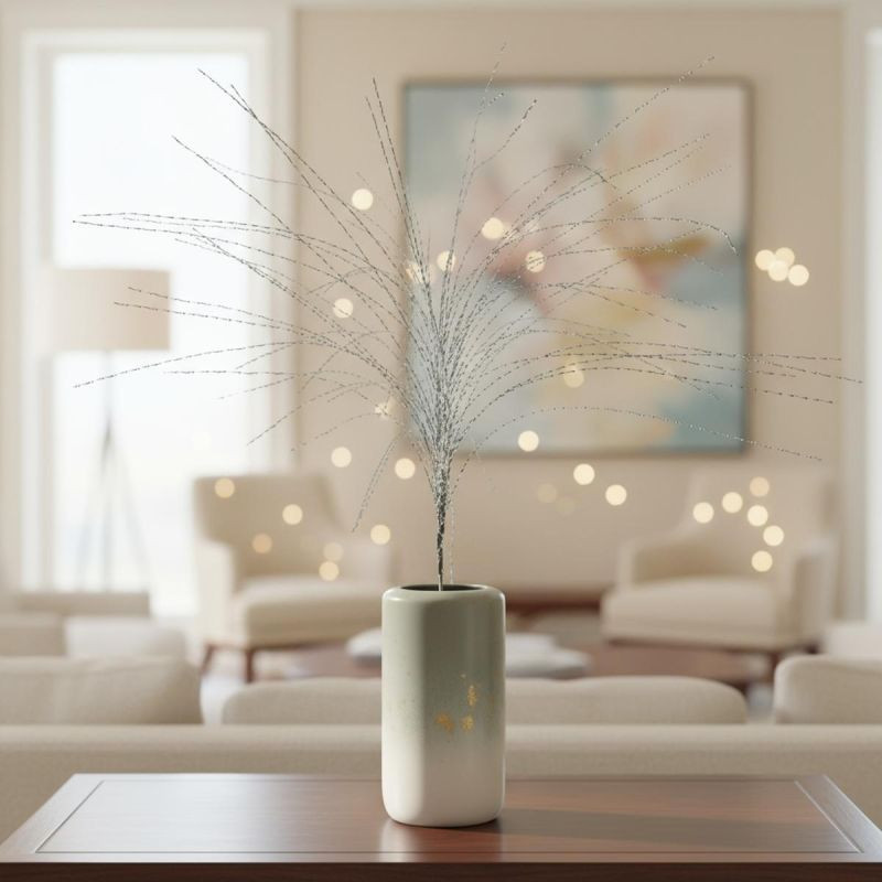 Jednoduše vložte tuto stříbrnou ozdobnou větvičku do vázy nebo rákosu a během několika vteřin proměňte aranžmá. Lesklý povrch krásně odráží světlo a vytváří okouzlující efekt ve vaší domácnosti, kanceláři nebo výloze.