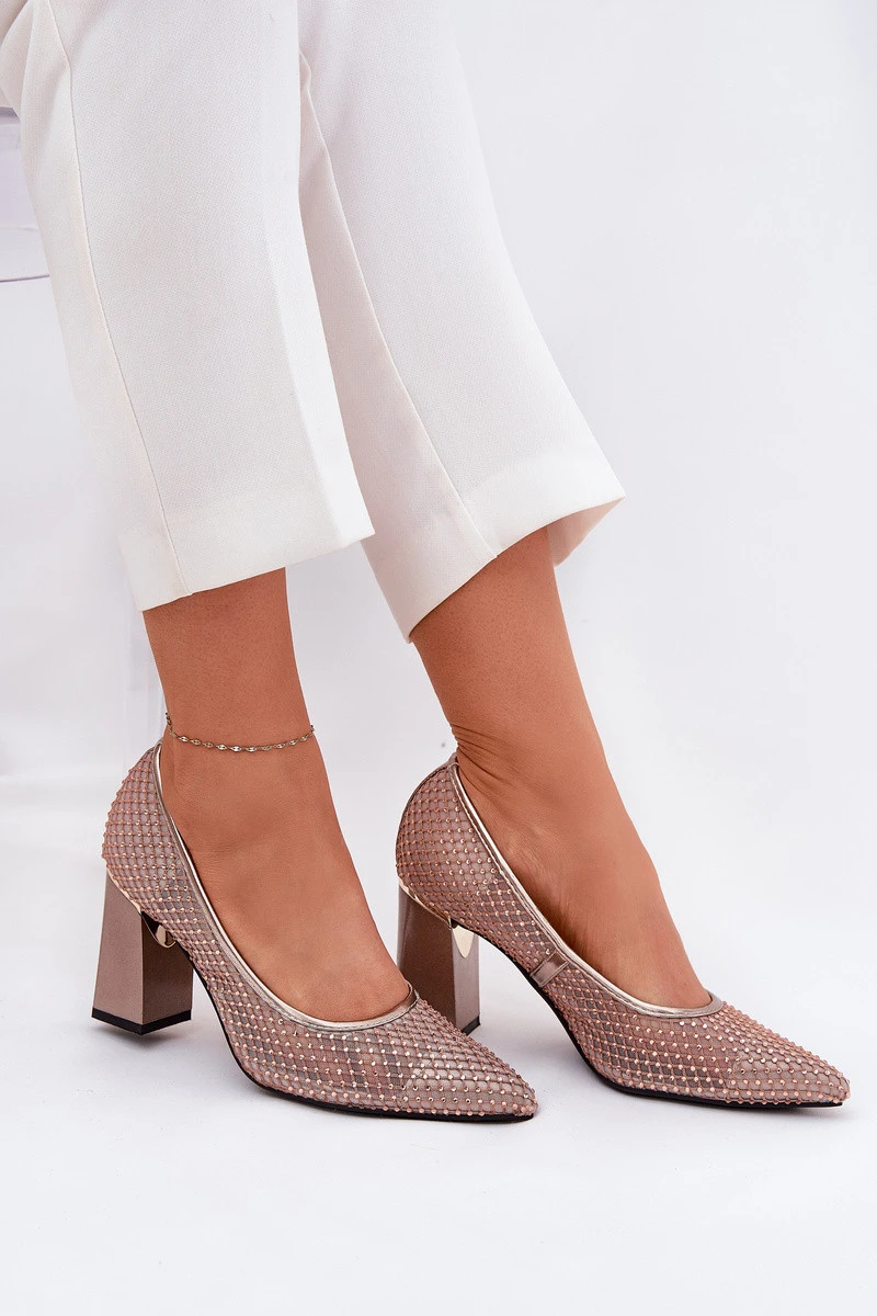 Dekorované Síťované Lodičky Na Podpatku Béžové Vinceza 62211