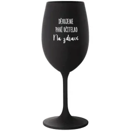DĚKUJEME PANÍ UČITELKO - NA ZDRAVÍ - černá sklenice na víno 350 ml