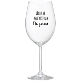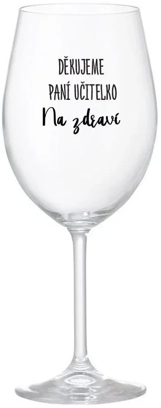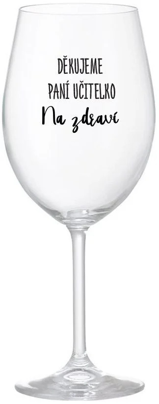 DĚKUJEME PANÍ UČITELKO - NA ZDRAVÍ - čirá sklenice na víno 350 ml