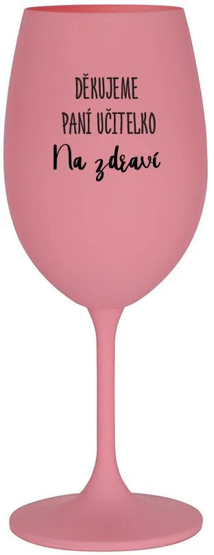 DĚKUJEME PANÍ UČITELKO - NA ZDRAVÍ - růžová sklenice na víno 350 ml