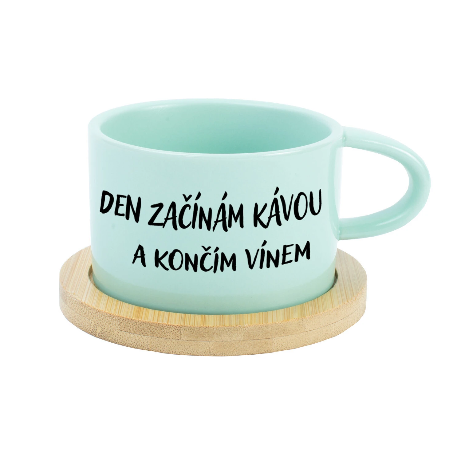DEN ZAČÍNÁM KÁVOU A KONČÍM VÍNEM - mint hrníček makronka 200 ml
