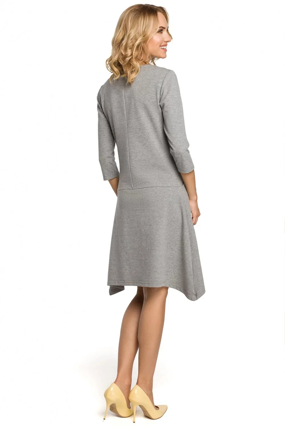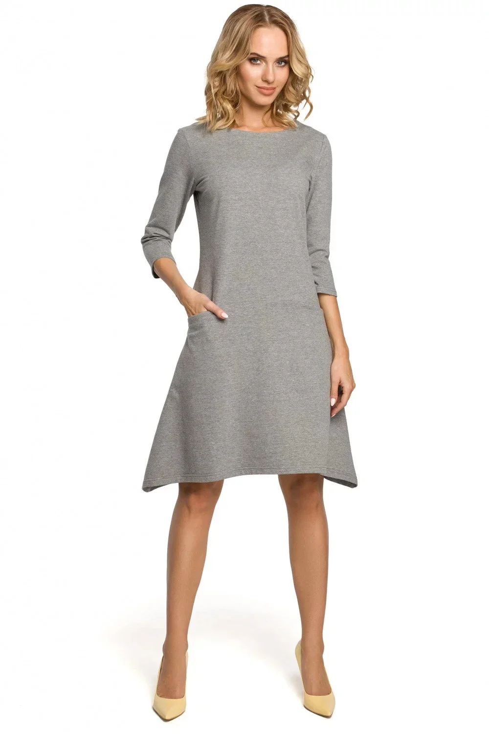 - mikinový úplet v rovném střihu mírně přiléhavých šatů s kapsami skrytými ve švu pod pasem.