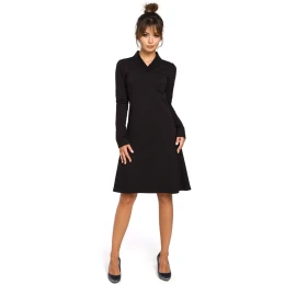 Šaty ve střihu písmene A s límečkem, otevřeným předním dílem a zavazováním na pásek se sponou, kvintesence ženskosti.