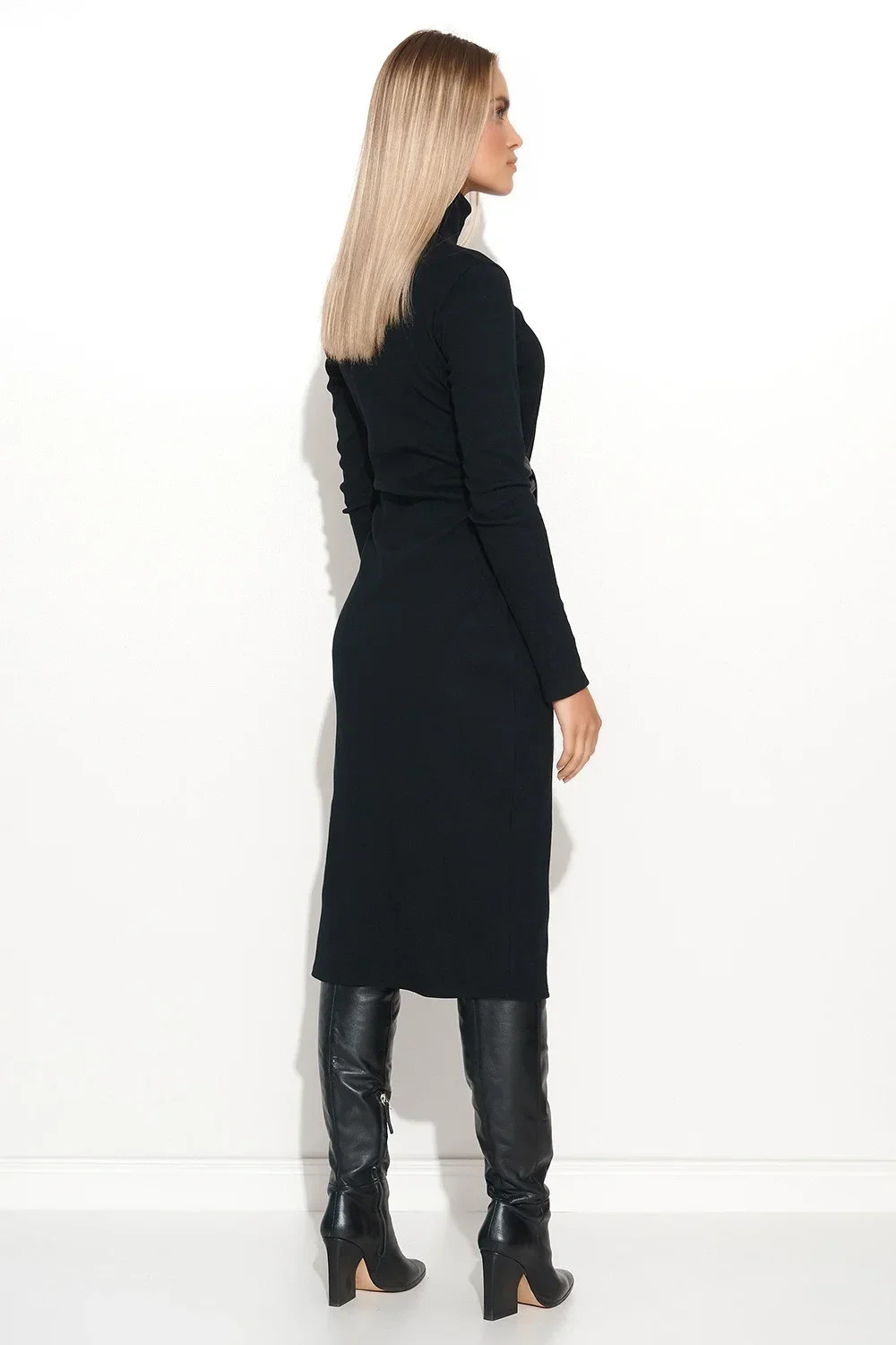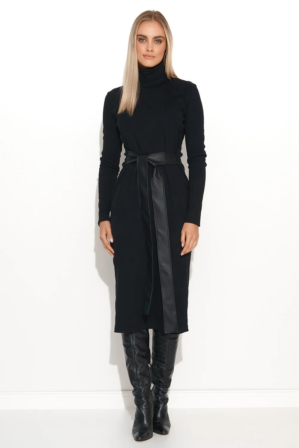 Šaty v délce ke kolenům z velmi módního žebrovaného úpletu. Proč ho musíte mít? Protože je to nesmírně pohodlný a univerzální kousek, který lze stylizovat na milion různých způsobů. Šaty mají dlouhé rovné rukávy a rolák. Na bocích má všité dva pásky z ekokůže, které můžete svázat do nonšalantního uzlu nebo mašle. Záleží jen na vás, zda se v těchto šatech projeví elegantní, nebo ležérní stránka. Noste je tak, jak vám to vyhovuje, a vždy se ciťte pohodlně. Můžete je mít všechny.