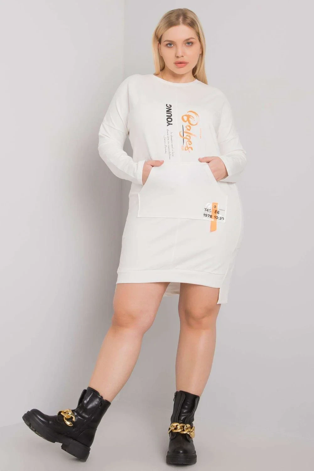 Dámské plus size šaty s kapsou v barvě ecru. Šaty s dlouhými rukávy.