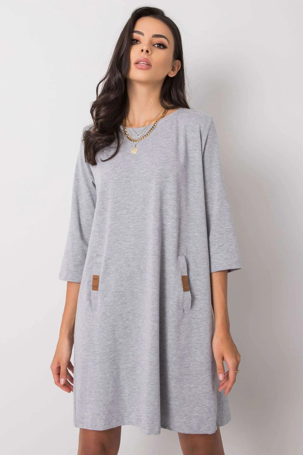 Šaty s 3/4 rukávy a kapsami na přední straně. Šaty s volným střihem. Ideální pro mnoho příležitostí.