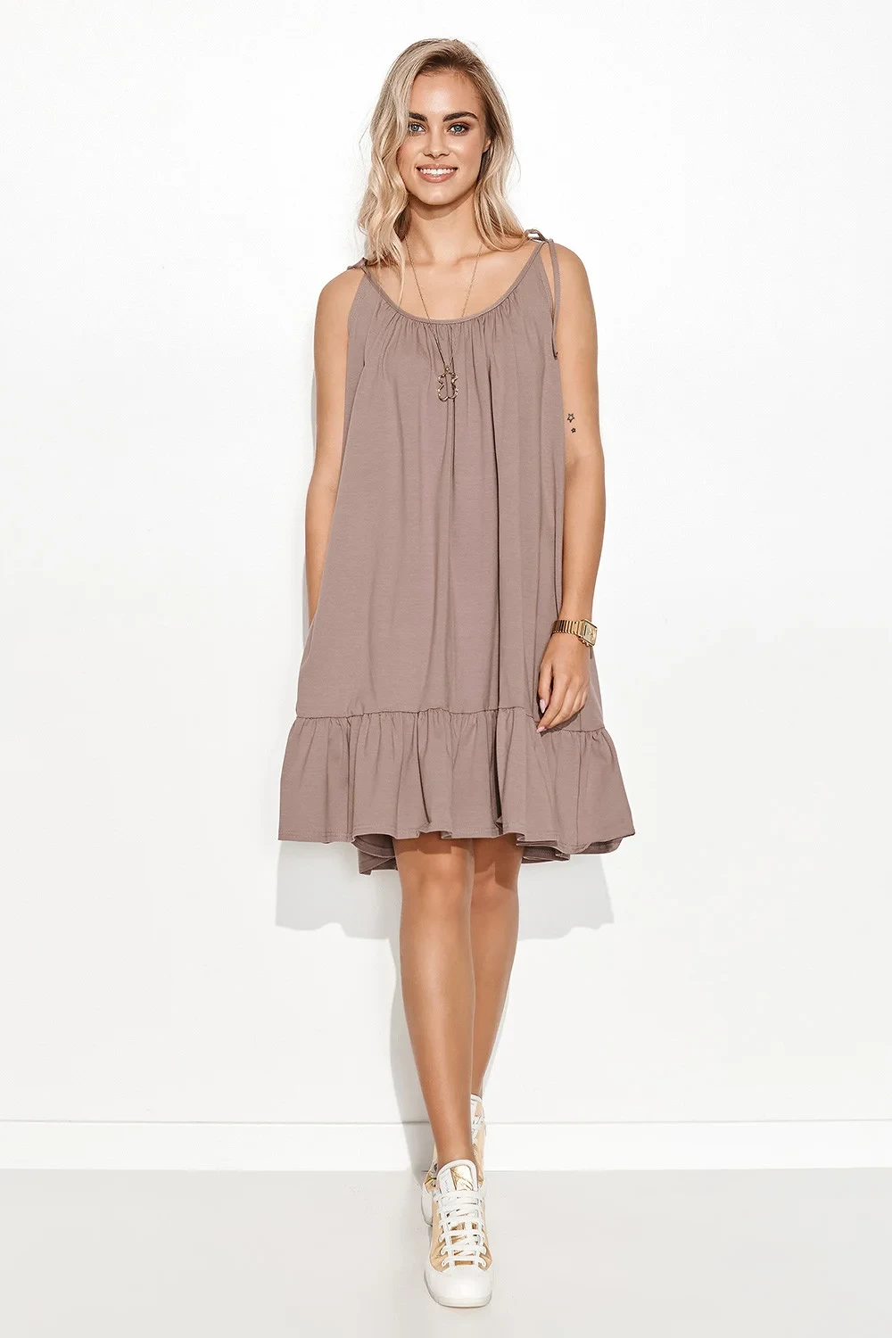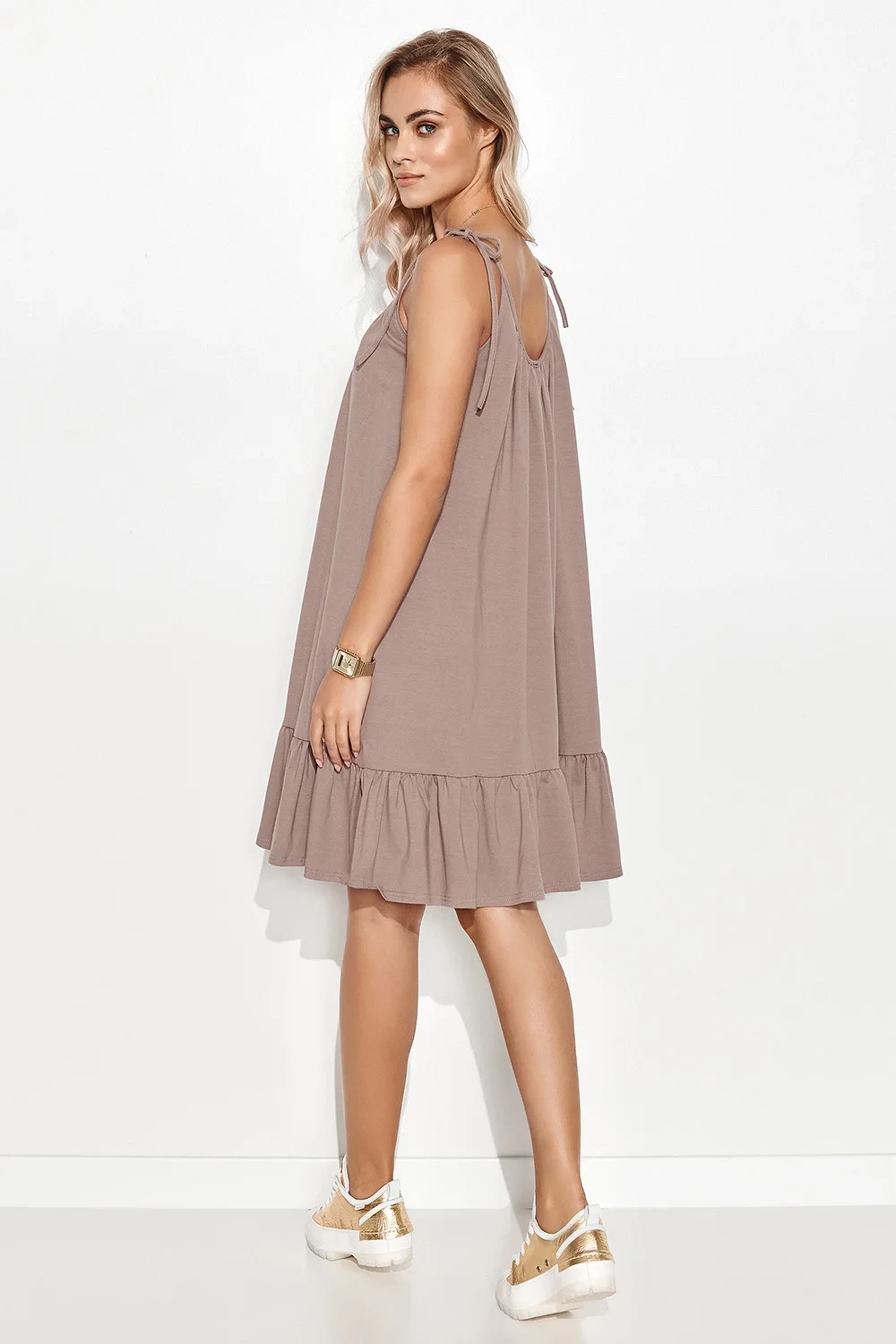 Letní šaty z teplákového úpletu příjemného na dotek. Šaty mají tenká ramínka zakončená romantickým zavazováním. Dívčí styl šatů doplňuje volánek všitý do jejich spodní části. Šaty jsou velmi pohodlné a ležérní. Lze je nosit volně, svázané páskem, řemínky nebo letním šátkem. Oblečte si ji k módním kovbojským botám nebo oblíbeným sportovním botám. V každém případě budou šaty vypadat skvěle. Noste ho tak, jak se vám líbí a jak se cítíte. Móda je přece o sebevyjádření.
