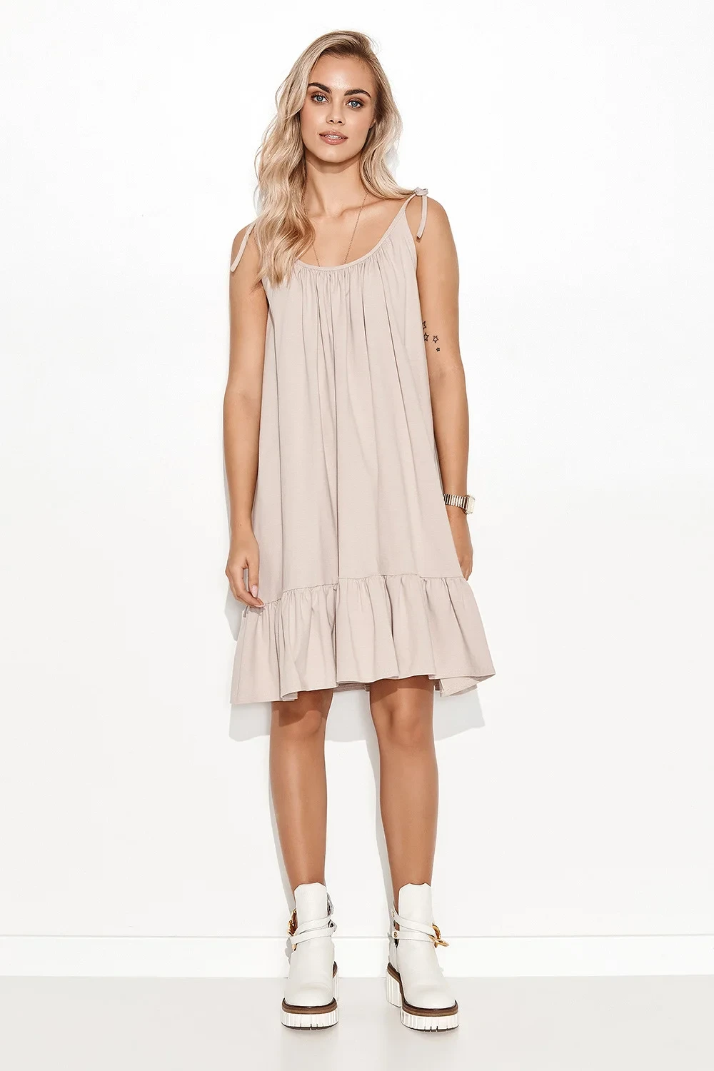 Letní šaty z teplákového úpletu příjemného na dotek. Šaty mají tenká ramínka zakončená romantickým zavazováním. Dívčí styl šatů doplňuje volánek všitý do jejich spodní části. Šaty jsou velmi pohodlné a ležérní. Lze je nosit volně, svázané páskem, řemínky nebo letním šátkem. Oblečte si ji k módním kovbojským botám nebo oblíbeným sportovním botám. V každém případě budou šaty vypadat skvěle. Noste ho tak, jak se vám líbí a jak se cítíte. Móda je přece o sebevyjádření.