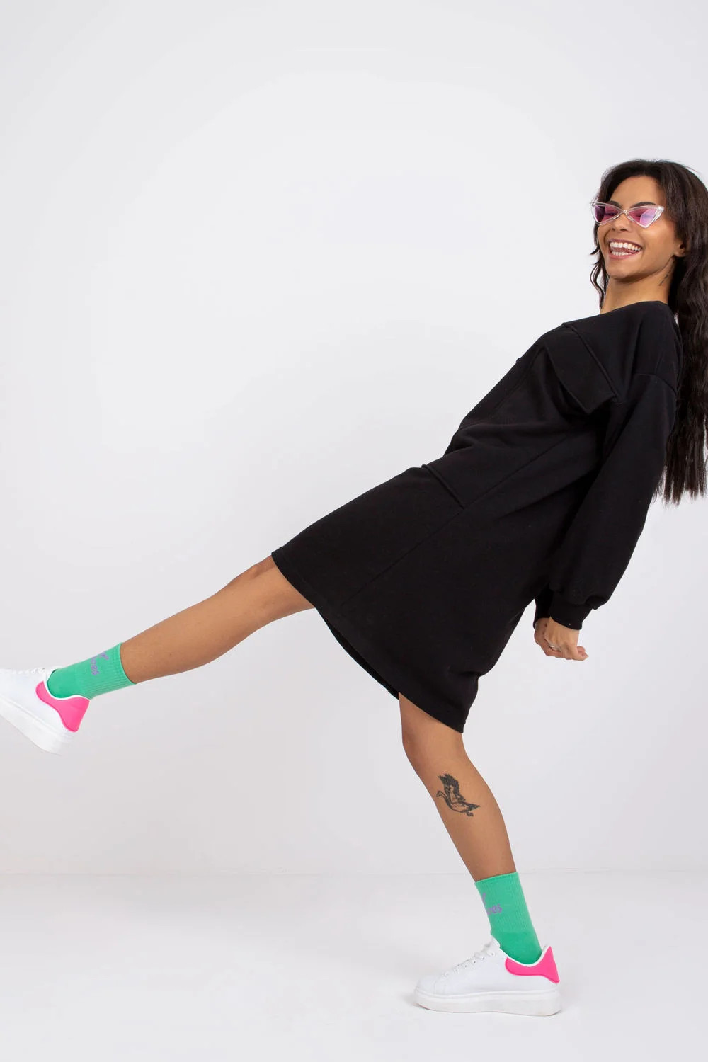 Volné šaty s dlouhými rukávy. Kapsy s nášivkami na přední straně. Ideální pro každodenní nošení.