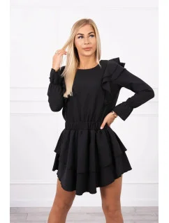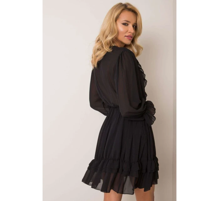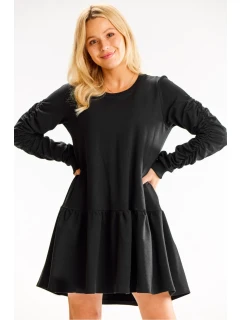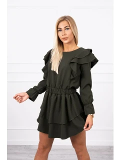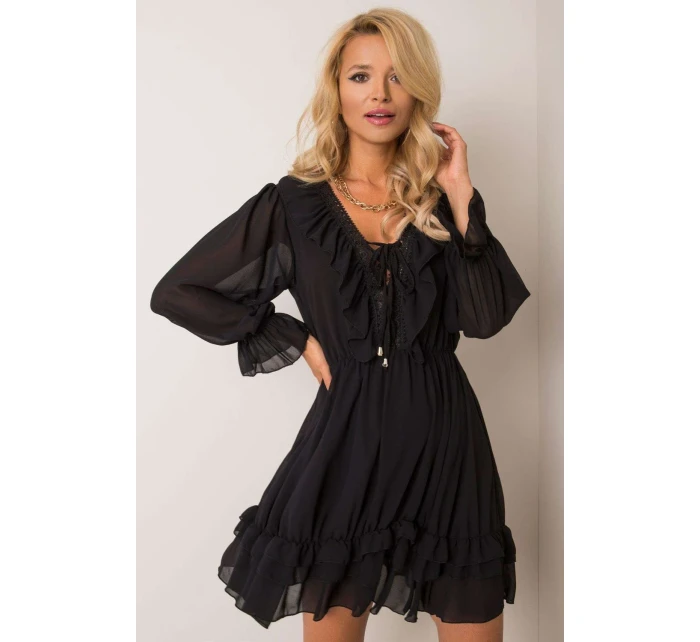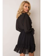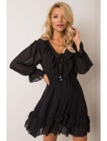 Šaty s dlouhými rukávy a podšívkou. Výstřih s volánky, krajkou a vázáním. Spodní část šatů je nařasená s volánky. Ideální pro mnoho příležitostí.