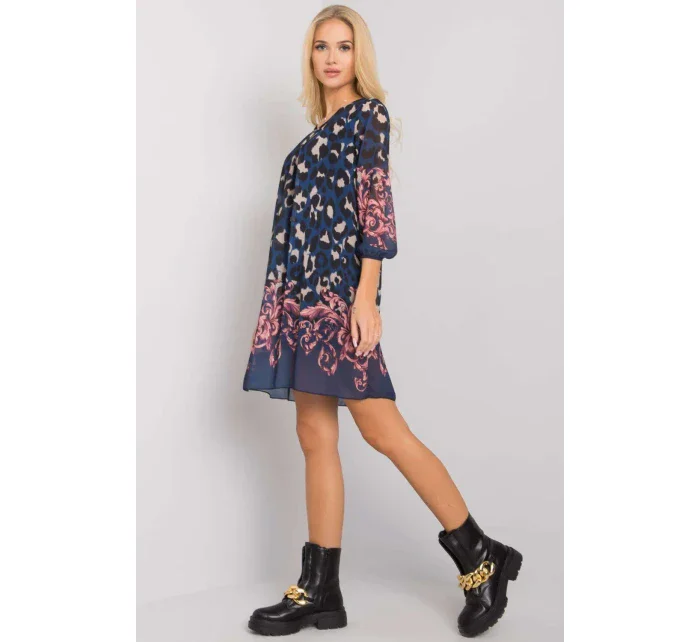 Volné šaty s 3/4 rukávy a kulatým výstřihem. Šaty mají podšívku. .