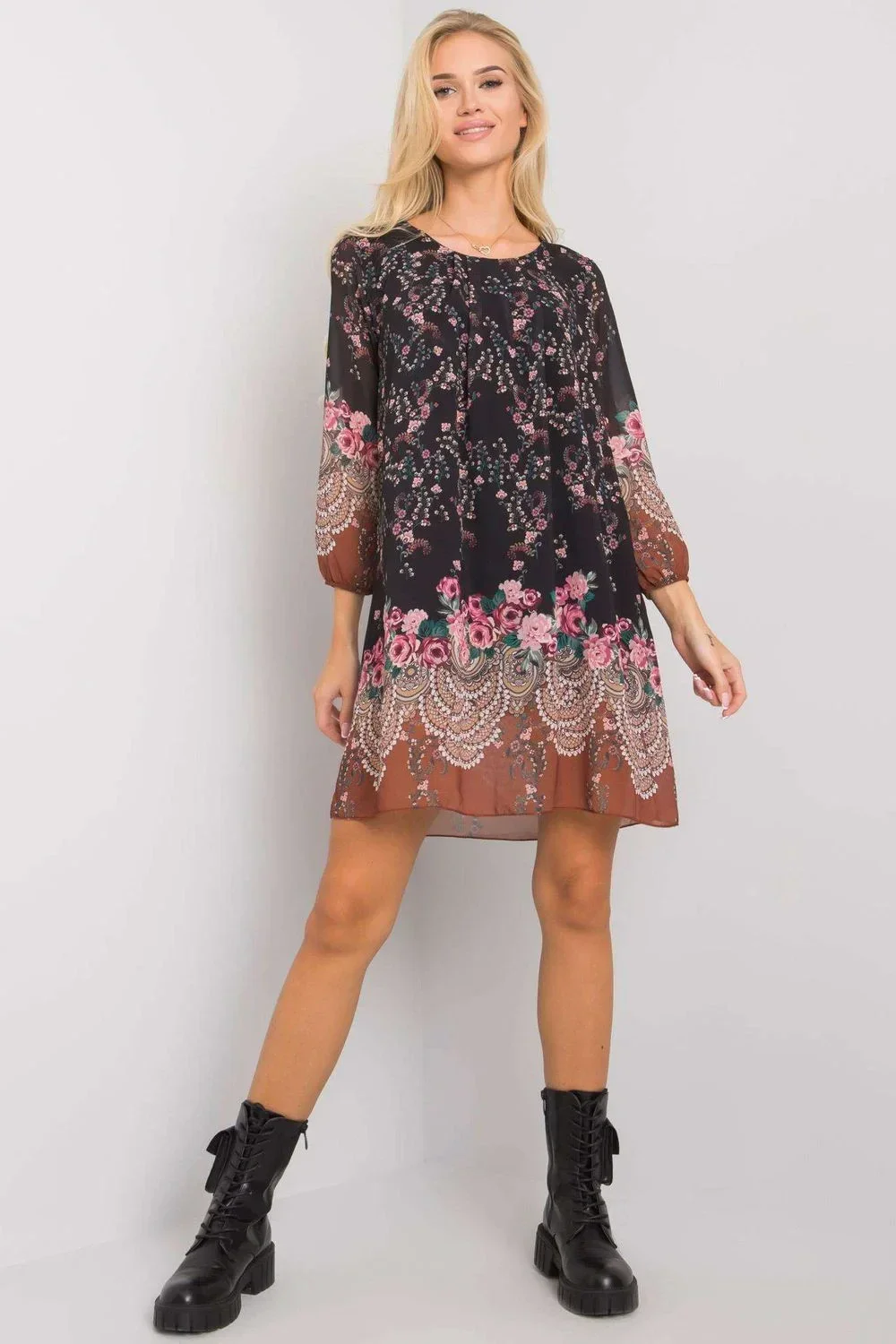 Volné šaty s 3/4 rukávy a kulatým výstřihem. Šaty mají podšívku. .