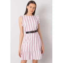 Letní šaty bez rukávů s ozdobnými volánky a kulatým výstřihem. Šaty z pruhované látky. Včetně opasku.