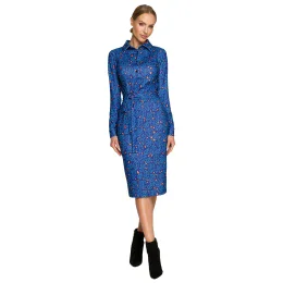 Midi šaty v tužce nemusí být nudné, pokud jsou ušity z látky se zajímavým pestrobarevným potiskem. Dbali jsme také na detaily, jako je límec, zapínání pod krkem a zavazovací pásek, který ještě více zvýrazňuje pas. Šaty se navlékají přes hlavu.