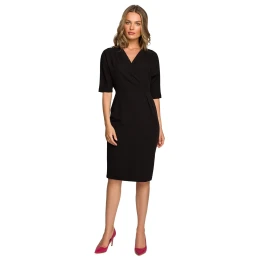 Na těchto šatech se nám líbí všechno: obálkový vršek s netopýřími rukávy a tužková spodní část, která zdůrazňuje siluetu. Šaty jsou bez podšívky a zapínají se na krytý zip.