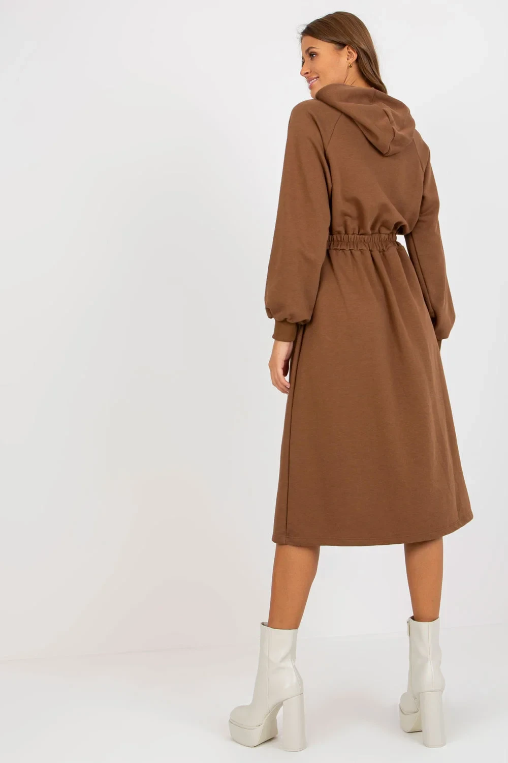 Mikinové šaty s dlouhými rukávy a kapucí. Elastický pas, ozdobné knoflíky na přední straně. Každodenní nabídka.