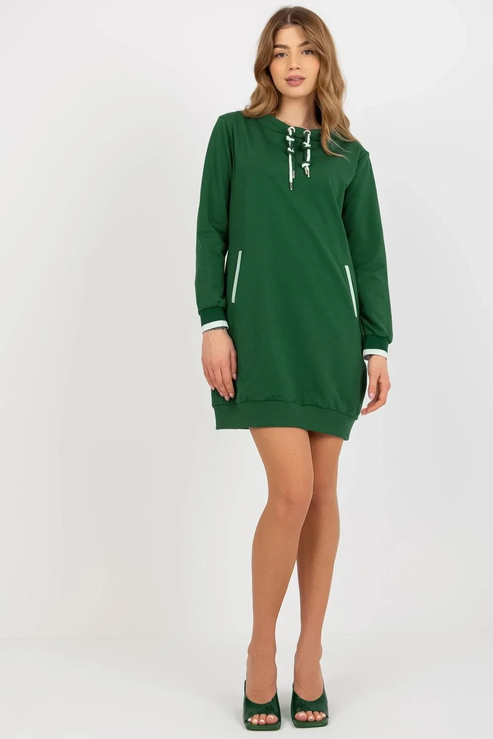 Teplákové šaty s dlouhými rukávy a kulatým výstřihem. Kapsy na přední straně.