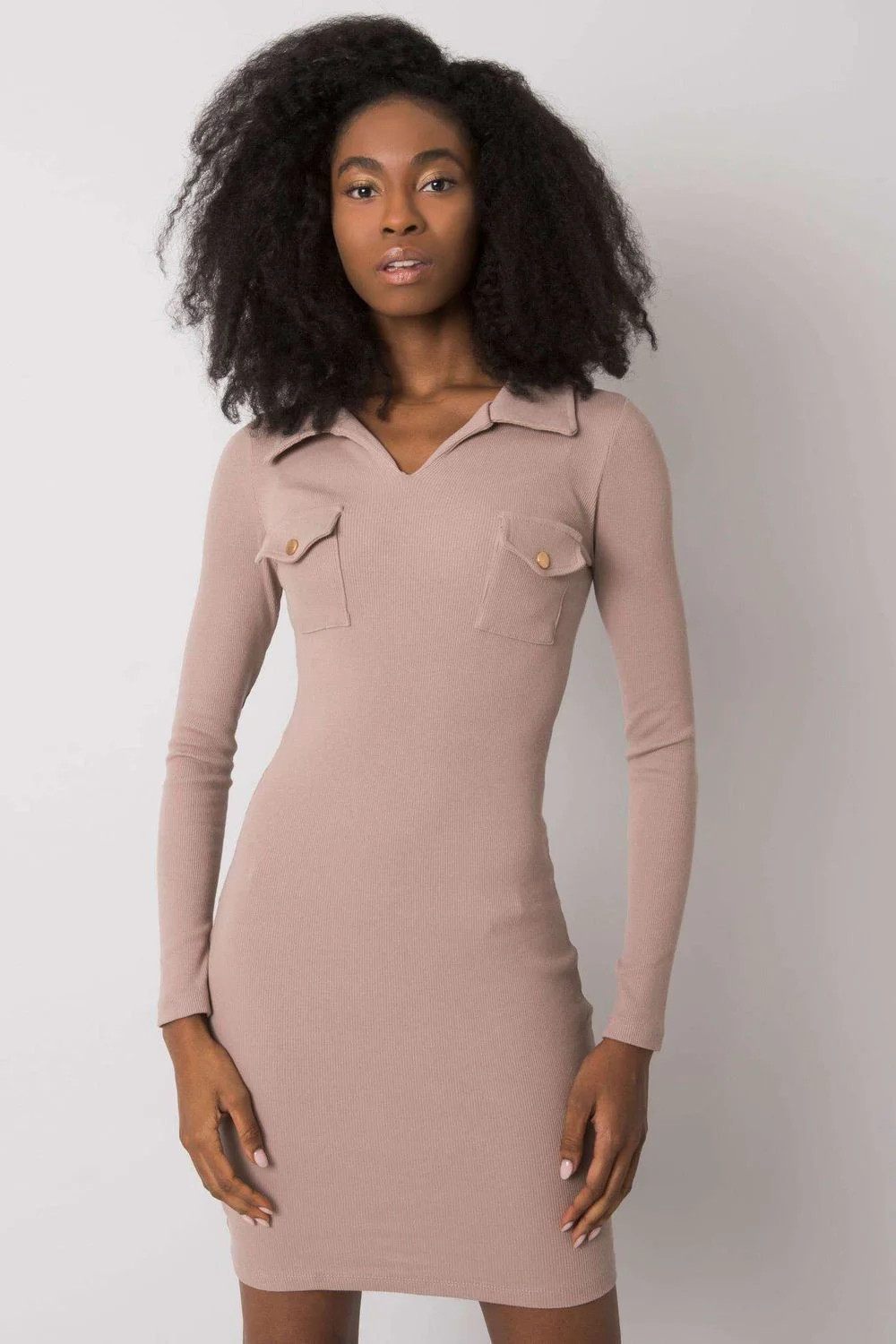 Šaty tužkového střihu z žebrované látky. Šaty s dlouhými rukávy a výstřihem do V.