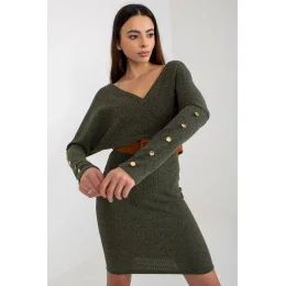 Pletené šaty s obálkovým výstřihem a dlouhými rukávy. Šaty tužkového střihu s páskem na doplnění. Ozdobné knoflíky na rukávech. Návrh ideální pro mnoho příležitostí.
