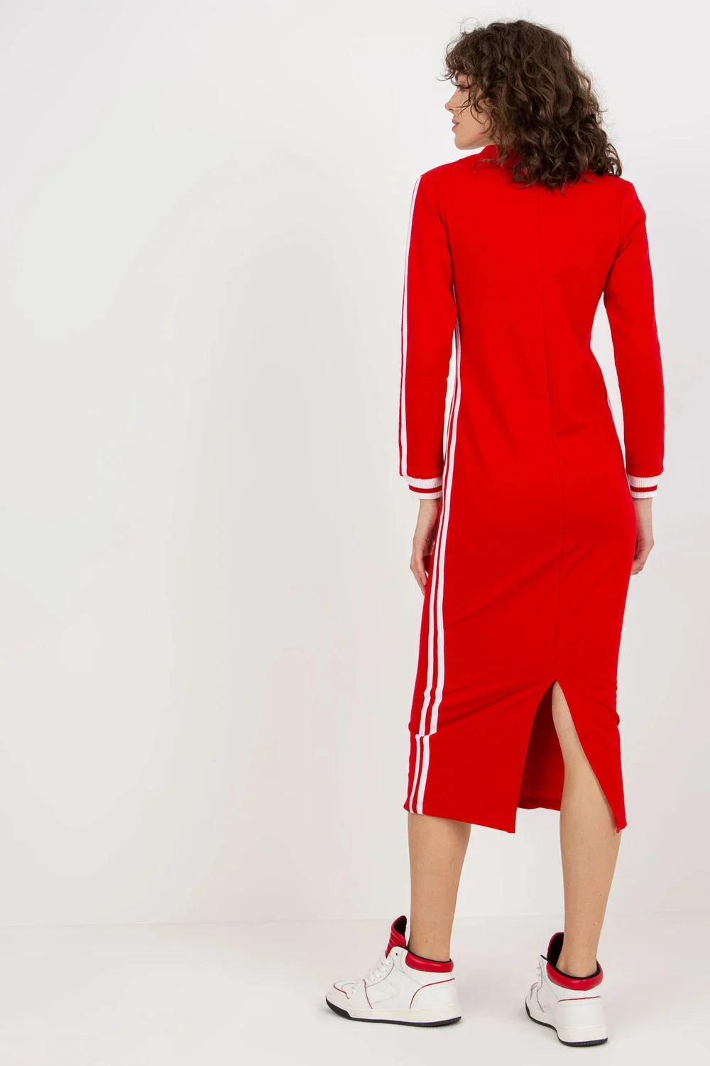 Šaty tužkového střihu s dlouhými rukávy a výstřihem do V. Šaty zdobí lemování v kontrastní barvě.