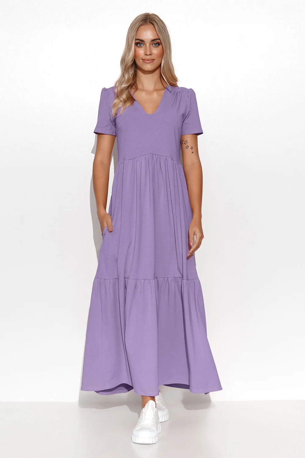 Šaty jsou bezpochyby jedním z nejženštějších kousků ženského šatníku. Není divu, jsou to právě ony, které dodávají šarm a dívčí půvab. Pletené maxi šaty byly ušity ve velmi klasickém střihu, který z téměř každé ženy udělá přesýpací hodiny. Příjemný úplet poskytuje pocit volnosti, krátký rukáv zakrývá ramena v jejich nejširších partiích. Výstřih do V prodlužuje krk, zatímco lem v pase zdůrazňuje nejštíhlejší partie ženské postavy a dodává jí lehkost. Lehké volánky, umístěné na několika místech po celé délce šatů, dodají každému oblečení romantický nádech. Maxi šaty v jednobarevném provedení nepotřebují mnoho doplňků, ačkoli jich také mnoho rády přijmou. Sportovní s oblíbenou ledvinkou a teniskami nebo elegantní s lodičkami na podpatku a kabelkou se spojkou.