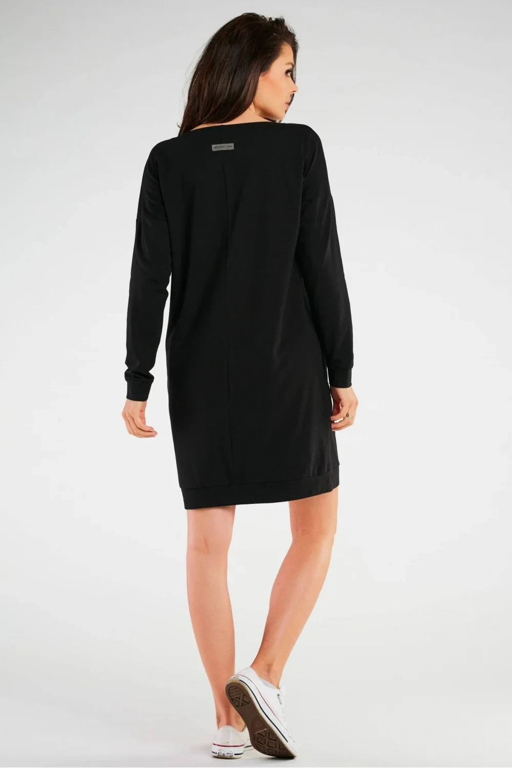 Volné šaty s dlouhými rukávy. Materiál je mimořádně příjemný na dotek a zajišťuje pohodlné nošení po celý den. Navrženo a ušito v Polsku.