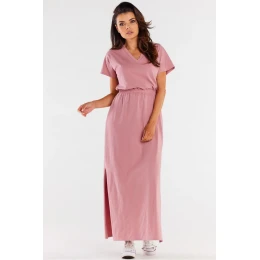 Maxi šaty s krátkými rukávy a srdíčkovým výstřihem. Maxi délka vám umožní opticky zeštíhlit siluetu a zdůraznit vaše přednosti. Navrženo a ušito v Polsku.