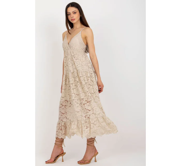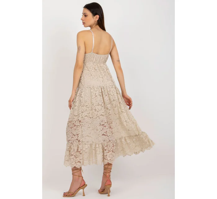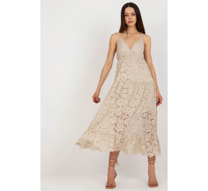 Krajkové šaty s nastavitelnými ramínky a srdíčkovým výstřihem. Šaty mají podšívku. Ozdobný volán ve spodní části.