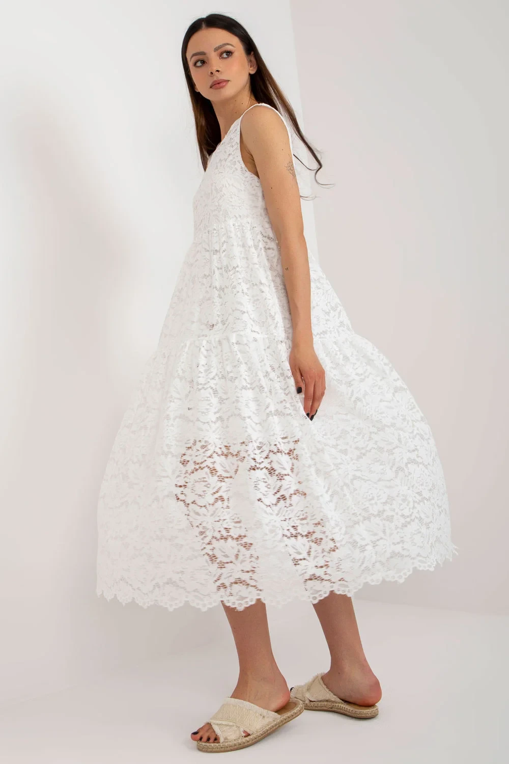 Ažurové šaty bez rukávů s rozšířeným střihem. Šaty mají podšívku.
