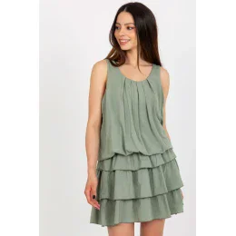 Letní šaty bez rukávů s kulatým výstřihem. Podšité šaty s elastickým pasem a volánky.