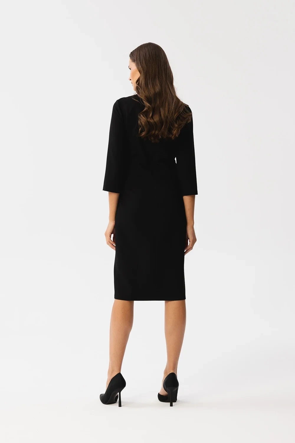 Představujeme vám okouzlující šaty tužkového střihu, které kombinují klasický šarm s moderním stylem. Jsou vyrobeny z vysoce kvalitní látky, takže jsou nejen elegantní, ale také pohodlné. Kulatý výstřih jim dodává na jemnosti. Modelující prošití procházející středem šatů zvýrazňuje siluetu a dodává eleganci. Rukávy ve 3/4 délce jsou univerzální a módní. Délka šatů sahá nad kolena, což jim dává univerzálnost pro různé příležitosti. Na přední straně a na boku je rozparek, který šatům dodává charakter. Skrytý zip na zádech usnadňuje oblékání. Šaty nemají podšívku, takže jsou lehké a pohodlné na nošení. Tyto šaty byly navrženy a ušity v Polsku, což svědčí o jejich kvalitě a jedinečnosti. Jsou ideální volbou pro mnoho příležitostí, od formálních setkání až po uvolněnější akce, a dodají vám sebevědomí a styl.