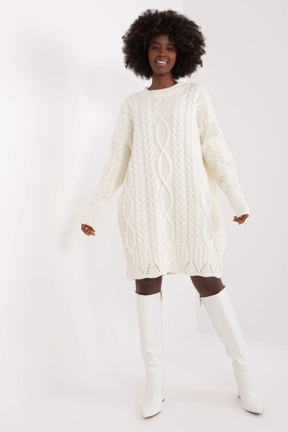Tyto šaty představují typický ležérní styl v kombinaci s pestrou strukturou látky. Dlouhý rukáv přispívá k jejich univerzálnosti, takže se skvěle hodí pro různé příležitosti, zejména ty neformální. Textura látky dodává šatům jedinečný charakter a vnáší do oblečení nádech originality. Díky midi délce jsou šaty elegantní, ale stále ležérní a pohodlné. Kulatý výstřih dodává šatům jemnost a usnadňuje jejich stylizaci. Bezpochyby se jedná o ideální volbu pro ženy, které ocení pohodlí, styl a lehkost v jednom. Akryl 70 %
