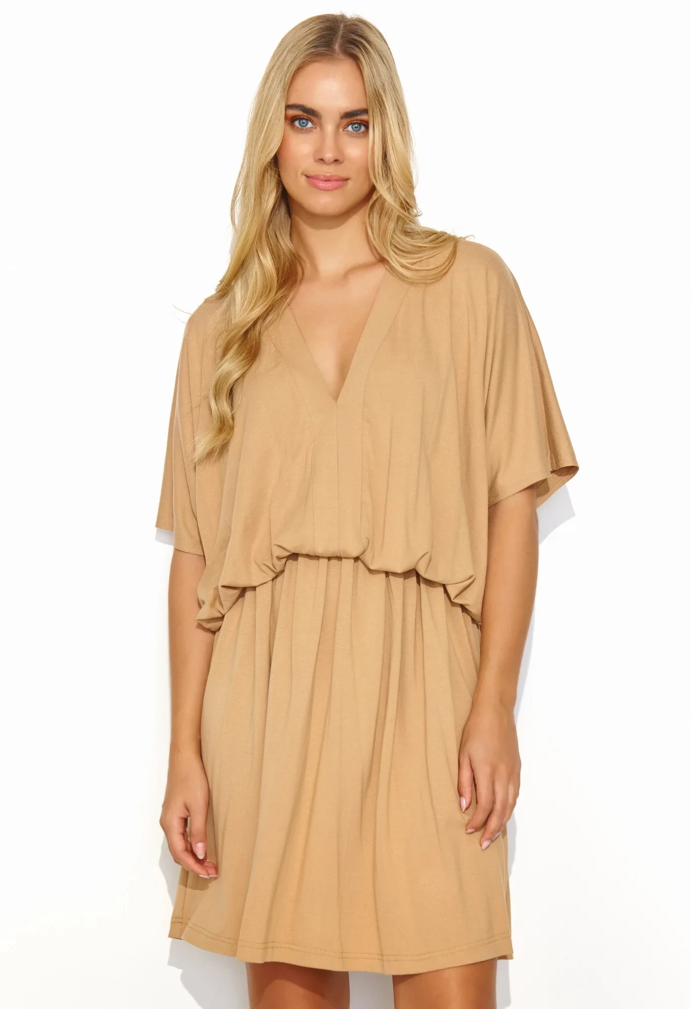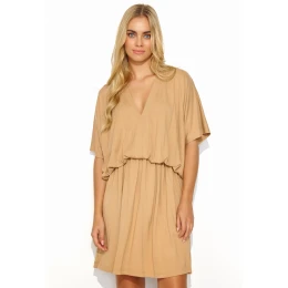 Volné krátké šaty se šňůrkou v pase jsou ideální volbou pro letní dny. Praktická šňůrka zvýrazňuje pas a dodává šatům lehkost a jemnou eleganci. Kreace má krátké rukávy a výstřih do V, což jí dodává ženský nádech a činí ji vhodnou pro různé příležitosti. Zlatá destička všitá do zadní části dodává šatům jedinečný půvab a nádech elegance. Jsou k dispozici v několika barvách, takže si můžete vybrat odstín podle svých individuálních preferencí. Tyto šaty jsou nejen výrazem stylu, ale také pohodlné a ležérní, ideální na letní procházky, setkání s přáteli nebo večerní posezení.